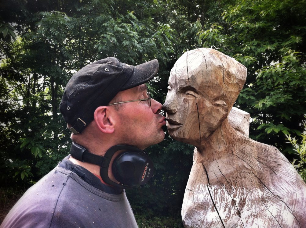 Peter Jacquemyn (1963° schaarbeek) moves easily between the visual arts and music. As a sculptor he assaults tree trunks with axe and chainsaw. His concerts are just as spectacular: with unbridled energy he lovingly wrestles his double bass.